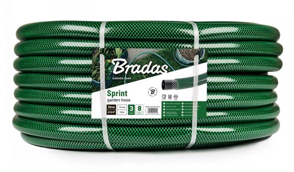 Bradas Háromrétegű kerti tömlő, akár 50 méter hosszúsággal. A tömlő belsejében olyan anyag található, amely megakadályozza az algák felhalmozódását a tömlő belsejében. Több
